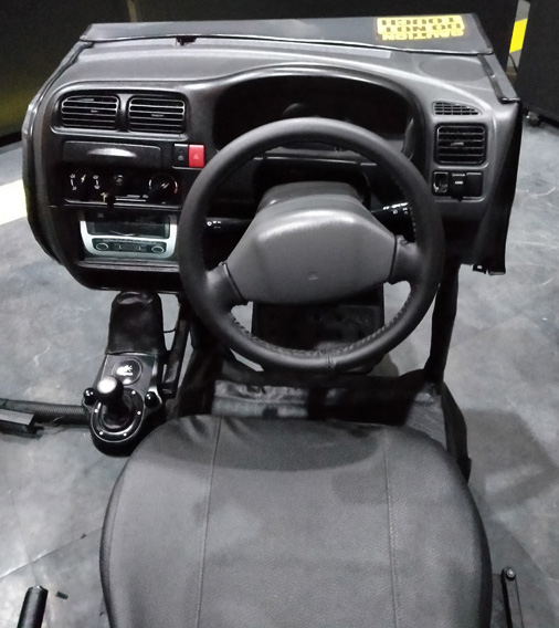 AAA Technologies Console based LTV/HTV driving simulator system consists of an open cabin with the adjustable driver seat and actual vehicle dashboard along with